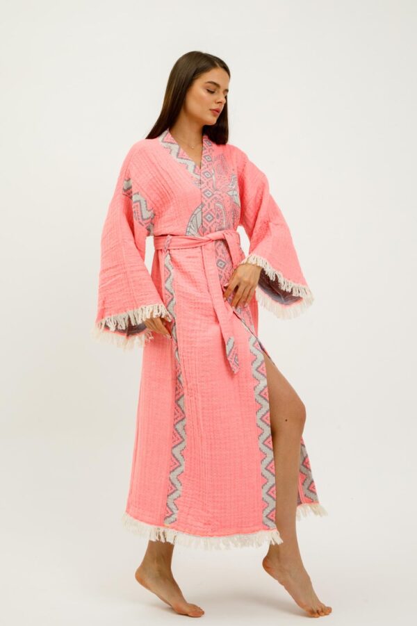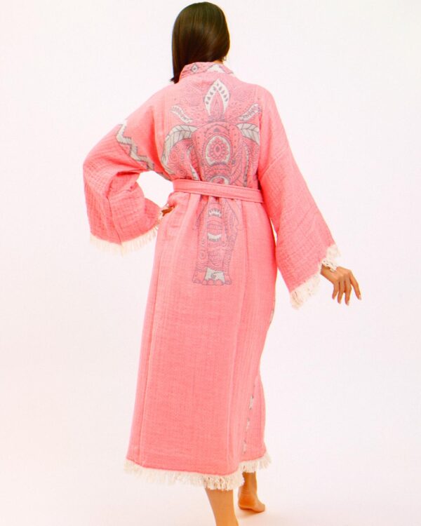 Халат от 100% органичен памук с ръчен печат и органични багрила Elephant, корал